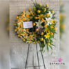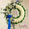 CORONA EN PARANTE DE FIERRO, ROSAS, POMPO, LILIUM, MONTECASINO, FOLLAJE LARGO Y FOLLAJE FINO.