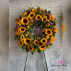 CORONA EN PARANTE DE FIERRO, GIRASOLES Y FOLLAJE FINO